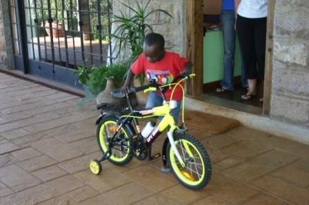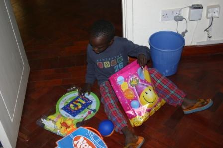 Yesterday was Jed's fifth birthday. (And the fourth one that we have been able to celebrate with him). About 7:50, I was still sleeping and I started to hear, "Sarah, Sarah, wake up." Jed was actually upstairs (I sleep downstairs) hollering for me to wake up. It took me a bit to really wake up but I did get up to celebrate the day with. Mom gave him a few presents early – a Nerf basketball net and a magnetic Pooh dartboard (where do they come up with these things anyways). He helped her make blueberry muffins (from a box) for breakfast. After breakfast, he got his BIG present. Dad set it up outside the door and then Mom had him open it and tah dah there was a Bicycle – his first. He spent the rest of the morning riding up and down the porch. A little before lunch, we had towards town (things were quiet yesterday – thankfully), to one of the malls – The Junction. We ate lunch at Java House (or as Jed used to calls it – Java's House). They didn't have his favorite – grilled tilapia – so he and Mom shared chicken strips. And we all got milkshakes in honour of his Birthday. After lunch, we went to Alvin and the Chipmunks. The theater was empty except for two other people! (I think it's been showing for a while). Jed enjoyed the dancing and singing chipmunks – at least there was a little love story for the adults. After the movie, we did a little shopping and rented a few movies – Jed wanted to watch one of the animated Alvin and the Chipmunks, so he got that and a Thomas movie. I got Stomp the Yard and a TV series (life gets boring when you are stuck inside a gated compound for extend periods of time because of unknown amounts of unrest outside – a missionary friend of ours said she finished a quilt last week). Back at home again; we had hot dogs for supper and then cupcakes (which Jed helped make) and ice cream. He had some problems getting those five candles out – umm I wonder how I'll manage 23 when my turn comes in March :). Then he opened a few more presents – lollipops from Mercy (who couldn't be here), a Thomas the Train watch from me, lots of new books from Mom and Dad. Then it was time for bed. This was a good thing because he was more active and wound up yesterday than I have ever seen him before. I had to ask my Dad if I was like that when I was 5 – he said probably :). I don't think so – I was a GIRL! (But I did talk as much as Jed!) Please pray for Jed – the situations around us are affecting even him. Whenever he sees smoke, (many people burn their trash around here) he says that someone's house is burning and he gets all worried. He also has started playing war a lot – something he had never done before. Although we try to be careful what we say around him and about what he sees on the TV, there is no way to shelter him from everything. More to come