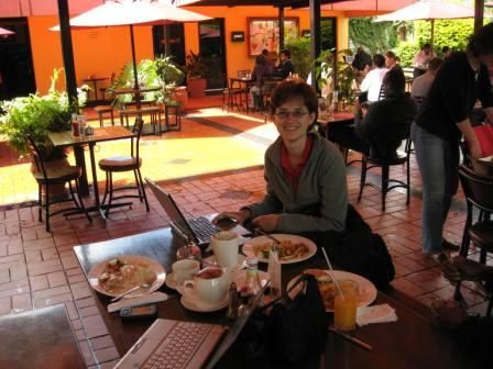Today after I threw together a 400 word article for Worldontheweb.com, we went out - the the NICE side of town. Gigiri is where the UN, USA embassy and one of the nicest malls around are. There is a JAVA HOUSE Coffee Cafe (kinda like starbucks but more of a restuarant) there with free Wi-Fi. So I'm online - for free not counting the MBs I'm using. Mom and Jed are seeing the Bee Movie at Village Market (the mall) while Mercy, Dad and I are hanging out at Java House. Dad is uploading windows updates and I'm surfing.