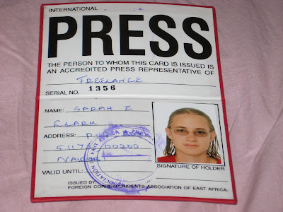 I'm a Journalist - with an official Press Pass issued by the Foreign Correspondents Association of East Africa. So I guess I can say that its official - I'm a foreign correspondent??? :).