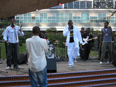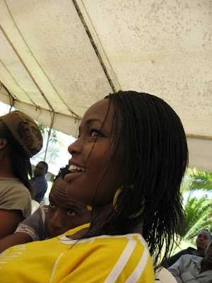Sunday was fun. Here's how it went. Youth Service was let by K-Krew which is a youth ministry that reaches out the youth through music and media. Its very cool and I'm slowly getting involved in a few ways. Musicians from the Krew led the service, lots of singing and dancing and an excellent message. A group of dancers from the youth group also "performed." After the service Mercy and I (oh yes Mercy is home for a few days…she leaves tomorrow through) went with a few of my acquaintances downtown. There was a reggae concert and one of my good friends, Viyerrah, was singing. So about 5 of us went to support him. It was great fun, except for two things: Mercy got a headache…I need to give up on taking her to concerts it always happens, and when we got to Karen, where we have to switch from a bus to a matatu…there were no matatus!!! So we had to take a bus and it takes a route that is like 3 times as long as the matatu. Oh well….(I didn't have enough money for a taxi or I would have taken one!) This picture is from Friday, I thought it was funny… This week…will be INSANE. A preview Monday (as in today): writing, shopping, media forum Tuesday: Trip to Nakuru Wednesday: Forum on Slum education, get my ID, do random things in town Thursday: Visit a school and getting them started on a project we are doing together Friday: Shopping, saying goodbye to friends, If I want to an all night Christian Rave Saturday: Visiting Day at the primary school I'm working with Sunday: Church, packing Monday: Packing, leaving Maybe it doesn't sound like much to you, but its too much!